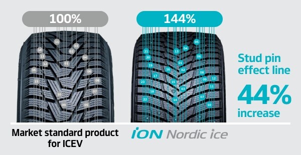 In a certified road wear test (over-run test), iON Nordic ice performed 12% better than it's competitor for ICEV